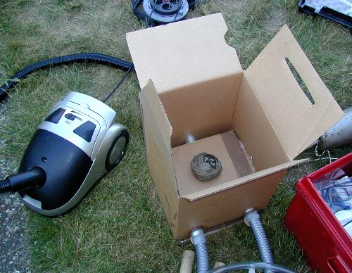 Da der Schuppen ständig genutzt wird, entschloss ich mich für die Umsiedlung des für die Jahreszeit recht kleinen Nestes. |