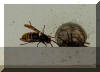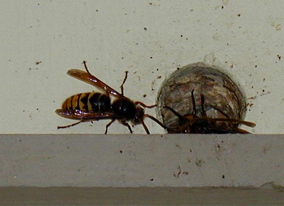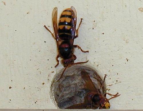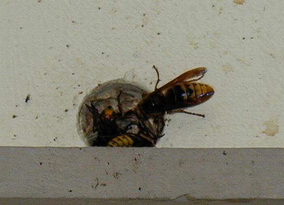Larven werden aus dem Nest geworfen und die Geschlechtstiere verlassen das Hornissennest.