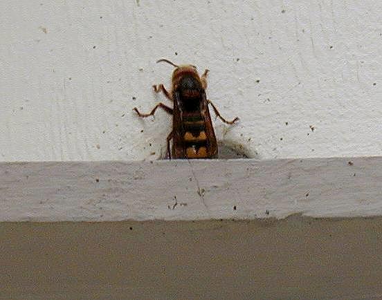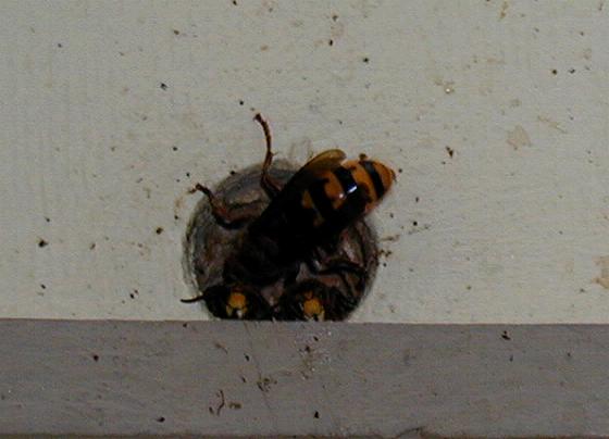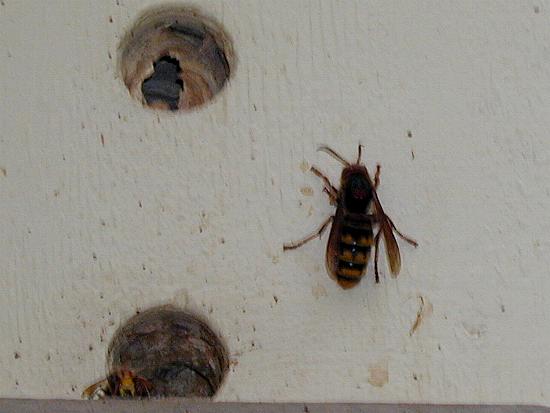 Seit mehreren Tagen umschwirren bereits Hornissendrohnen den Nistkastenkasten und die sonnenbeschienenen Gehölze in der nächsten Umgebung des Neststandortes. Sie warten auf die abfliegenden Jungköniginnen.