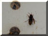 Recht groß sehen die Königinnen gegenüber den Arbeiterinnen aus. Mit ihrem tiefen Brummton fliegen sie schwerfällig vom Landebrett des Nistkastens zur Paarung ab.