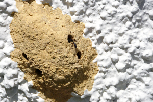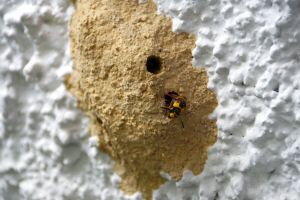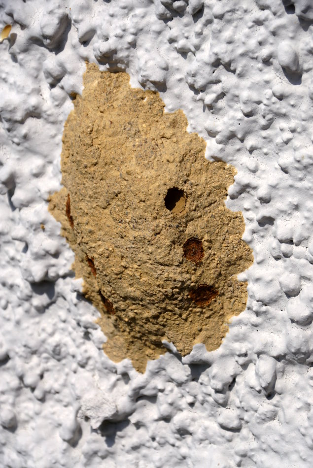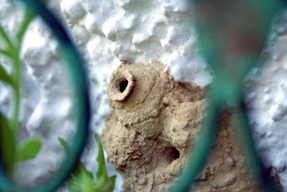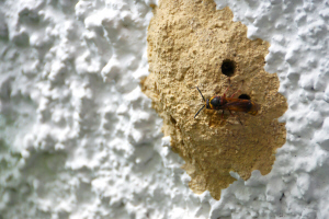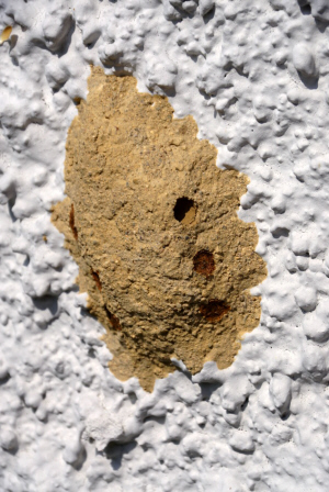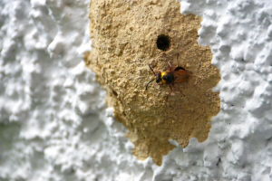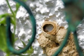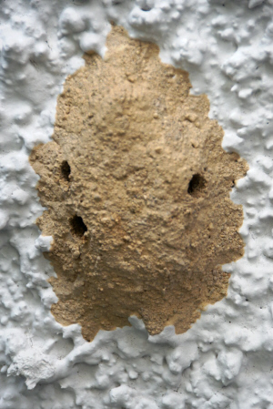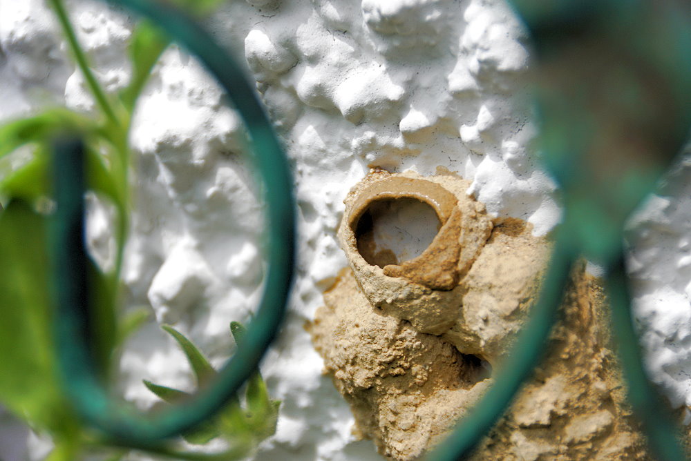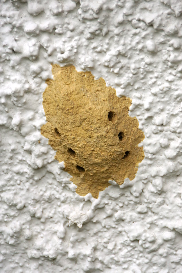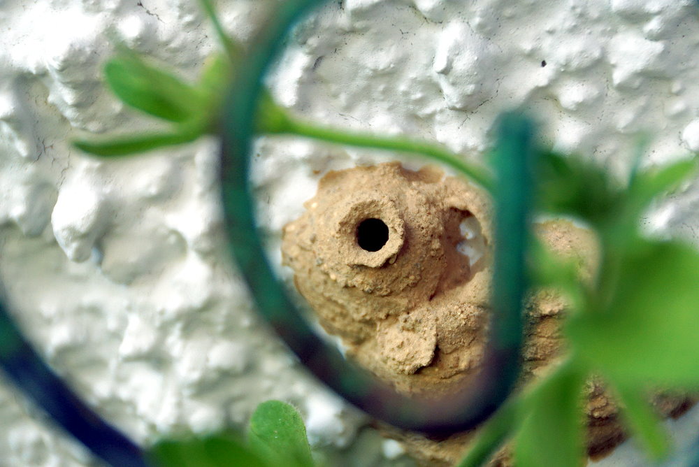 Schlupflöcher, aus denen im Juni die jungen Lehmwespen
