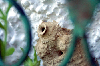 schlüpften, mit einem rotbraunen Lehmpfropf verschlossen.