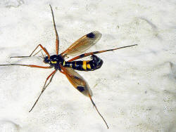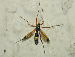 Entwicklung: Die Schnaken fliegen von Juni bis August. Die Larven entwickeln sich im Mulm alter Laubbäume, vor allem von Buchen. Wissenswertes: Total harmlos, kann trotz der gelb/schwarzen Färbung nicht stechen (Mimikry).