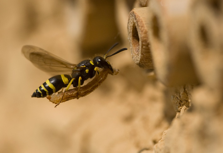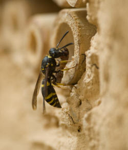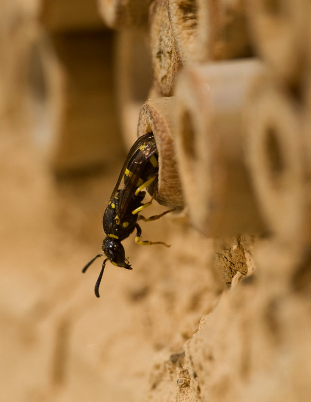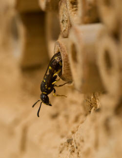 Mauerrisse oder angebotene Wildbienennisthilfen.