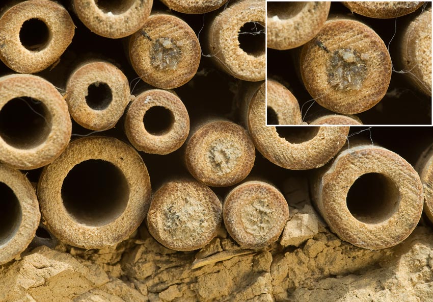 Käfern in Totholz, Niströhren von Wildbienen, hohle Pflanzenstängel,