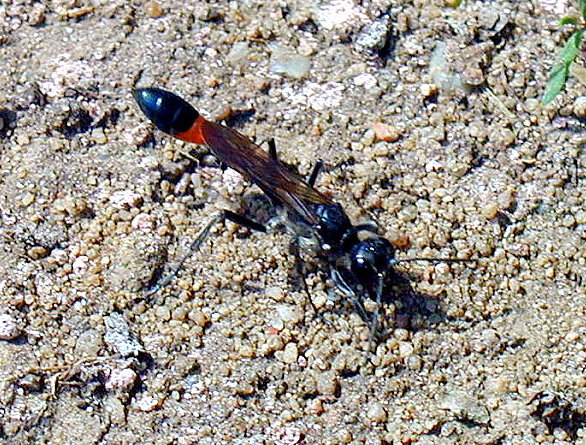 Teil des Hinterleibs ist rot, der hintere schwarz mit