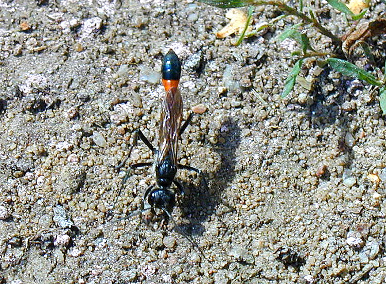 Sehr schlanke Art mit sehr lang gestielten Hinterleib. Der vordere