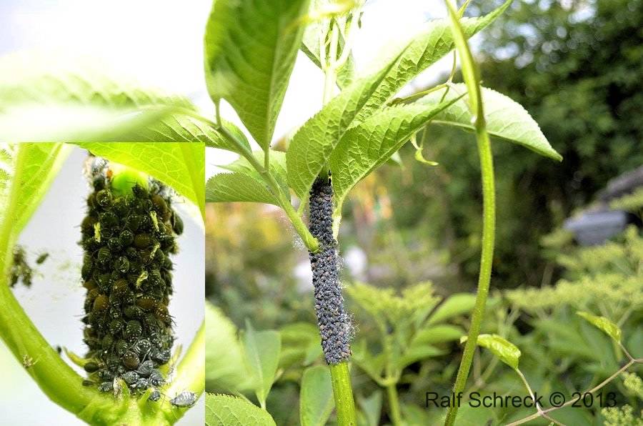 einen süßen, klebrigen Saft wieder aus. Das Honigtau tropft nach unten und findet sich daher auf den Blattoberseiten