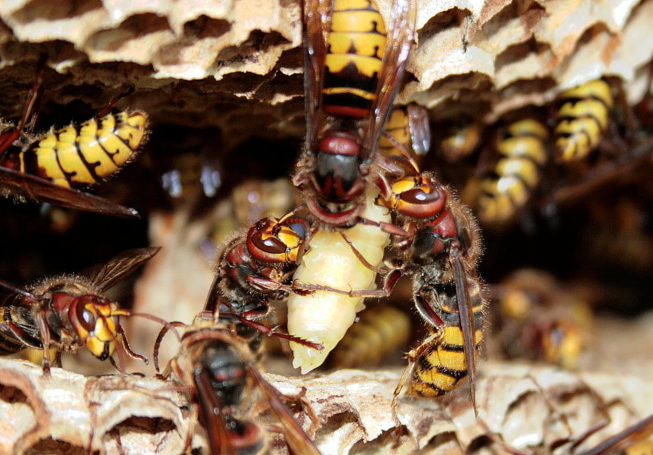 gesunde Larven aus den Zellen gezerrt. Selbst