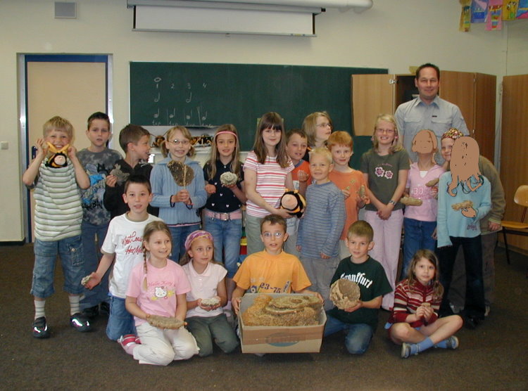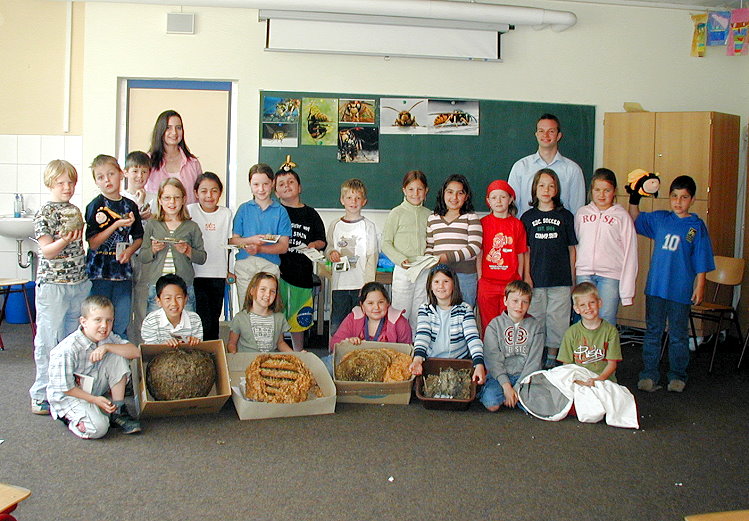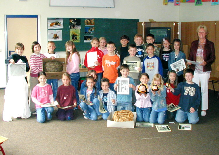 Bildmaterial in Form von Folien oder Diaaufnahmen, verschiedene Wespennester und Tierpräparate verschaffen einen kleinen praktischen Einblick zum Thema: Nestbau und Tiere. Der 15 minütige Videofilm "Das Jahr der Hornissen" rundet den Vortrag ab. Selbst die Lehrkräfte lauschen mit großem Interesse dem Vortrag.