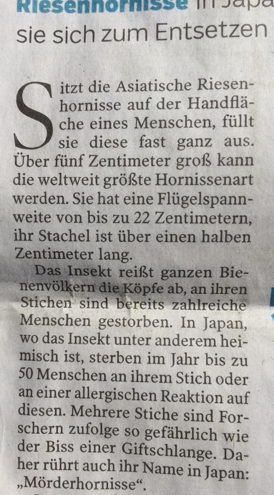 Das Problem war, dass manche Zeitungen das Bild einer heimischen Hornisse veröffentlichten.