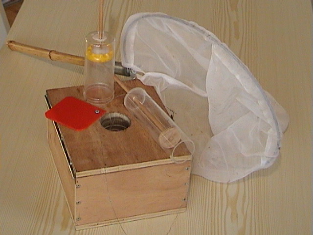 Kontrolle, dann werden die gefangenen Wespen aus der Abfangbox entlassen und