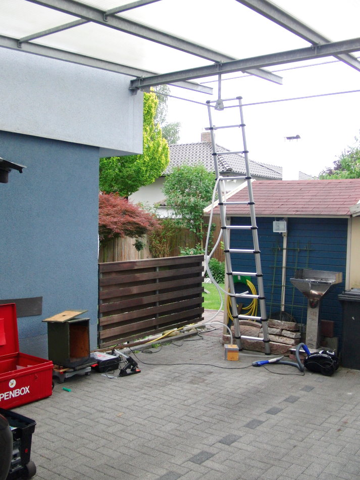 Schlauchwagen im Garten verbleiben. Der Nestbau wurde mit dem Wagen in