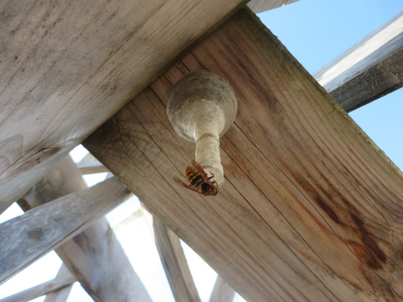 Wespen und Hornissen bauen ihr Nest immer von oben nach unten. Daher