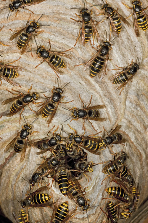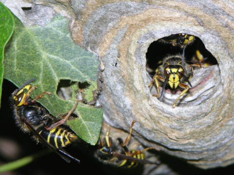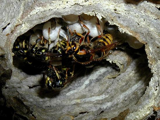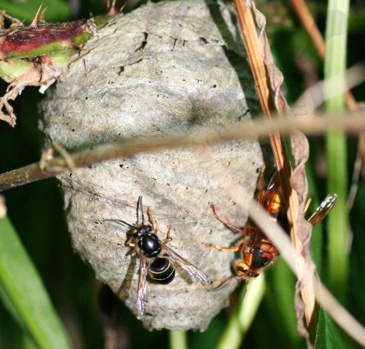 friedfertige Mittlere Wespe wird, aufgrund ihrer freihängenden Nester und ihrer