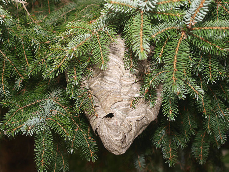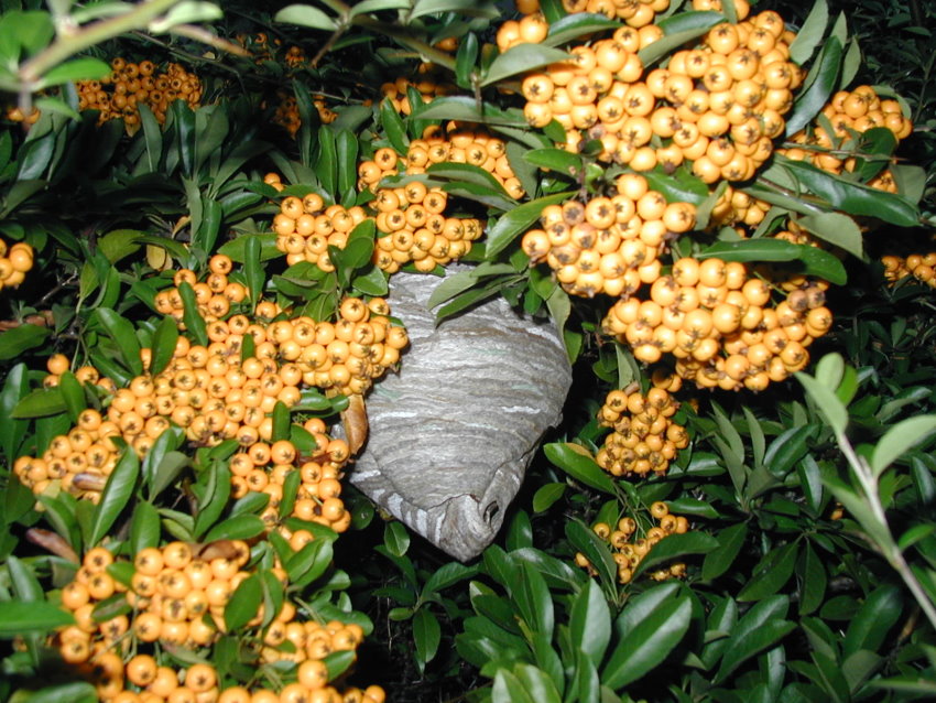 bei anderen Wespennestern. Als freihängendes Nest, Wind und Wetter