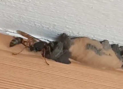 der Baustelle, erzeugt die Orientalische Mörtelwespe sirrende Geräusche,