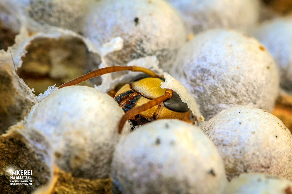 entwickelt hat und diese ihre Wabenzelle verlässt.