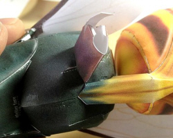 oder mit einem Skalpell auf schnittfester Unterlage.