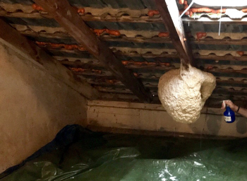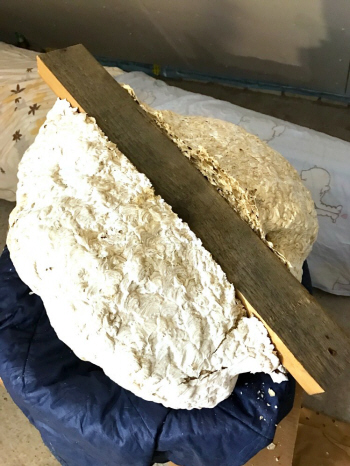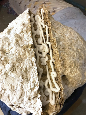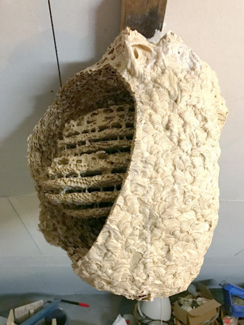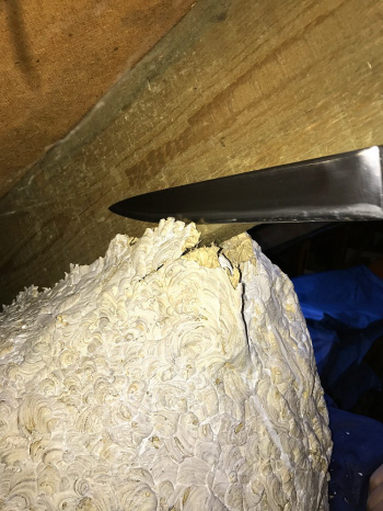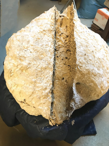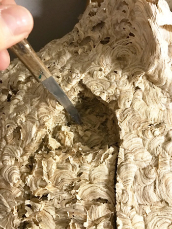 Wespennest vorsichtig vom Untergrund abgetrennt.