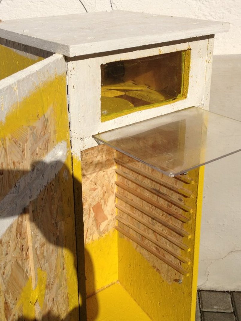 dem Dach des Kastens befindet sich die eingebaute Fangbox