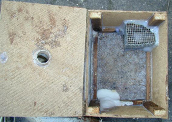 Gitter hier mit einer Plexiglasscheibe verschlossen. Nach