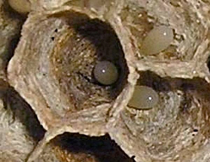 Eier in der Wabenzellen einer Hornisse