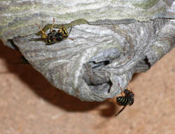 der Feldwespe besitzt ein Wespennest immer eine Nesthülle, die um den