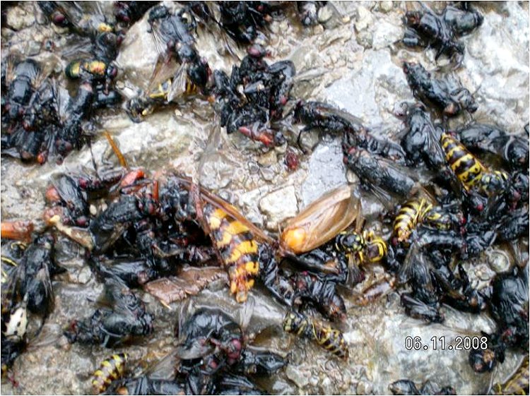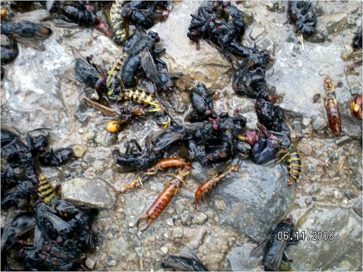 Fangflasche wurden etwa 3 tote Hornissen festgestellt. |