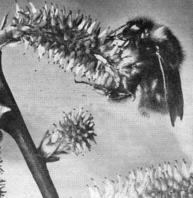 Erdhummeln bauen ihre Nester in Höhlen. Das tun viele ihrer Verwandten aus der Gruppe der Stachelimmen, und wir kennen unter ihnen hervorragende Baumeisterinnen, die ihre unterirdischen Stollengänge und Kammern in den verschiedensten Formen selbst ausschachten: Ameisen, Grabwespen, Furchenbienen und auch die den Hummeln äußerlich recht ähnlichen Pelzbienen. Zu solchen Arbeiten aber sind Hummeln nicht befähigt, sie suchen sich vielmehr verlassene Fertigbauten anderer Tiere oder natürliche Höhlen. Davon gibt es genug; alte Wühlmausgänge und dergleichen finden sich überall. Aber es ist selten der Fall, daß diese Gelegenheiten den Ansprüchen einer Hummelfamilie auf den ersten Anhieb entsprechen. Und zudem ist Bombina nicht die einzige, die sich jetzt auf Wohnungssuche begibt. Mit ihr fahnden bereits viele andere nach günstigen Objekten. Instinktiv sucht Bombina zunächst das mütterliche Heim vom letzten Jahr auf, und ihr ausgezeichneter Orientierungssinn läßt sie den heimlichen Zugang trotz der inzwischen verstrichenen Zeit bald wiederentdecken. Doch eine ihrer Schwestern ist früher aufgestanden und hat bereits die Wohnung bezogen. So friedlich die beiden im vergangenen Jahr miteinander gelebt, so eng und kameradschaftlich sie sich an kalten Tagen aneinandergepreßt und ohne Neid aus denselben Honigtöpfen geschleckt haben, so gründlich scheint das alles vergessen zu sein. Jetzt herrscht ein anderer Ton: Erbittert streiten die beiden um das Erbe, balgen miteinander und reißen sich wie Furien gegenseitig die Haare aus. Die Schwester besitzt indes die schärferen Krallen und bissigeren Kiefern. Sie zwickt und kratzt so heftig, daß Bombina sich geschlagen gibt und sich zuletzt fluchtartig zurückzieht. Nun muß sie es anderswo versuchen. Dicht über der Erde ihre Kreise ziehend, erforscht sie überall das Gelände nach einer verborgenen Unterkunft. Es gibt viele Örtlichkeiten, die geprüft werden müssen, aber keine entspricht ihren Erwartungen, oder sie sind bereits von anderen Erdhummeln besetzt. Auch an gefährlichen Begegnungen fehlt es nicht. Einmal, in einem Loch unter einem Felsbrocken, rennt sie beinahe einer Eidechse in den Rachen, nur im letzten Augenblick kann sie dem entsetzlichen Drachen entwetzen. Zornig pfeifend stürzt Bombina ans Tageslicht und beruhigt sich erst nach einem guten Tropfen Märzenbechernektar. Bald darauf stolpert sie in einem halbverfallenen Erdgang fast über eine Spitzmaus, die zum Glück eben ihr Nickerchen macht. Als Schneeflocken vom Himmel wirbeln, ein eisiger Nordost über das Land fegt und für drei Tage der Winter zurückkehrt, muß Bombina eine Pause einlegen und ihre kostbare Zeit tatenlos unter einem Haufen welker Blätter vertrödeln. Erst in der zweiten Woche — sie hat inzwischen wohl fast tausend Löcher und Höhlen geprüft — entdeckt sie endlich etwas, das ihren Absichten so ziemlich entspricht. Am Rain einer südseitigen Hangwiese liegt unter einem Steinhaufen ein alter Stollen, vor Nässe geschützt, Gestrüpp und Wurzelwerk verbergen den Zugang. Der Stollen führt nach mehreren Windungen in etwa zwanzig Zentimeter Tiefe in eine Kammer, geräumig genug für hundert und mehr Hummeln. Trotz der Schneeschmelze ist der Raum knochentrocken. Irgendwer muß in vergangener Zeit diese Höhle bereits bewohnt haben, denn am Boden verstreut liegen noch Häufchen zerbissener Halme, Flaumfedern und Pflanzenwolle. Lange und gründlich prüft Bombina die Vorteile der Behausung und erforscht auch die nähere und weitere Umgebung, insbesondere nach Ameisennestern. Da sie nichts Bedrohliches entdeckt, ist sie entschlossen, hier seßhaft zu werden. Sie säubert Stollen und Kammern von Schutt und Abfällen, nimmt sich die vorhandenen Niststoffe vor, zerrupft die gröberen Teile sorgfältig zu feinsten Fasern und schichtet sie am Ende der Kammer zu einem Haufen. Ringsum stützt sie ihn mit Erdkrumen und kleinen Steinchen ab. In der Mitte ihrer „Daunen" stampft und wühlt sie einen kleinen Pfuhl zurecht, der ihr reichlich Platz gewährt. Bis spät in die Nacht werkelt sie bald da, bald dort, um dann todmüde, zum erstenmal im neuen Heim, im eigenen Bett einzuschlummern.